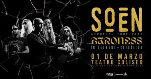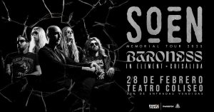 Originalmente era un tremendo concierto y ahora se transforma en un gran mini festival para la capital, mientras en la Quinta esté sonando esa música que no nos gusta. El viernes 28 de febrero y sábado 1 de marzo, Soen estará en Teatro Coliseo y ahora será acompañado, además de los chilenos Crisálida, por los geniales Baroness de los Estados Unidos e In Element de Argentina, cerrando un cartel espectacular para el último fin de semana del verano.