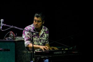 La banda también nos ofrece, a un cada vez más participativo Francisco Vásquez, el hombre tras los Hammond, que hizo gala de talento, carizma y simpatía en todo momento. Junto a ellos la guitarra de Felipe Bravo, a cargo de sacudirnos emocionalmente en cada punto de su Fender Strat, matizada con toques acústicos merecidos tras aquellos sacudones tormentozos, algo propio de los Floyd que poco a poco nos llevaban a lo sublime, vease en “Dogs” (Animals, 1977).