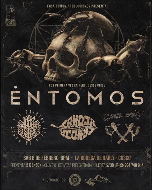 Serán dos fechas las que -hasta el momento- Éntomos brinde en Perú. Primero, el día viernes 7 de febrero en la capital, Lima, y luego el día miércoles 8 del mismo mes en Cusco.