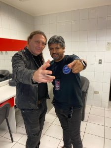 Pues bien, y tras este relato caemos de lleno en la previa y posterior entrega musical. Pasada las 16 horas llegaban los más anciosos para recibir al maestro, que como bien dijo Gandalf “Un mago no llega ni antes ni después, lo hace en el momento preciso”, justo para reunirse con los más avesados en un meet and greet organizado por la productora a cargo de la gira, Killer Producciones, derrochando energía positiva y mucha simpatía, algo que lo engrandece aun más.