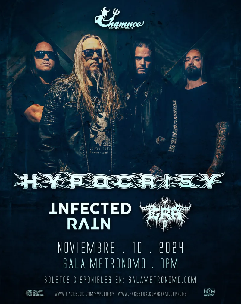 El mejor metal de Europa desembarca en Chile este 10 de noviembre en Sala Metrónomo durante esta imperdible cita con los legendarios Hypocrisy, acompañados de Infected Rain y Grá.