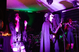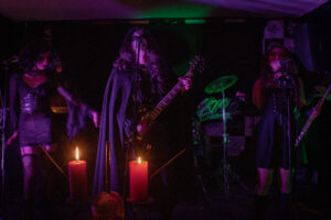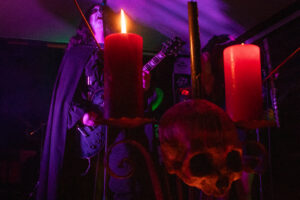 La banda encargada de iniciar el rito fue Alluring (Temuco) con sonidos Black/doom y tintes de metal sinfónico. Su fundador Faunos, para esta oportunidad fue acompañado por Eratos (Voz femenina), Tyria (Flauta traversa), Dethgar (Bajo), Decomposed (Batería) y Corvux (Teclado). El escenario completamente acomodado como altar, rodeado de cirios y cráneos, llamó la atención de todos los asistentes, una propuesta novedosa para la escena metalera de Temuco, tocaron temas de su EP “In the cold lips of Eros” (2022) y algunos sencillos como “Agonize” (2022), “Disappear” (2023) y el más reciente “Kill me, Alluring Diva” (2024). En los últimos minutos de su presentación, se acercan al escenario dos súcubos que realizan un potente ritual erótico dando mayor realismo al concepto de la banda. Cabe destacar que regalaron a algunos asistentes un CD promocional de “Kill me, Alluring Diva”.