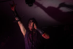 Luego es el turno de subir a las tablas de la banda black metal de Temuko Füthan, con casi dos décadas de trayectoria. Inician con “El paso de los errantes” haciendo arder a su fiel: “Horda pagana”, con un recorrido por su trayectoria y sus memorables cantos paganos como “Amuchura”. El antro retumba con las voces de los asistentes coreando “Sendero del guerrero” y “Raíces de una nueva era”. Füthan no es una banda que suele tocar en vivo muy seguido, con muy pocas fechas nacionales y en Temuko, lo que hace más mítica a la banda, lo cual muchos fanáticos (me incluyo) agradecían el que Hereje Producciones los haya invocado.