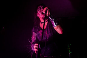 Cercana a la media noche llega el momento que nos convocó a todos, Kréen nos trae todo el sonido atmosférico black/doom de las pampas de Punta Arenas. Con una poética voz suena “Olas” el primer acto del álbum “Ecos de Olas, Céfiros y Llamaradas” que narra la historia de un inmigrante chilote desde el archipiélago a la Patagonia, evocando con los riffs de guitarras y blast beats de la batería, el viento frío, el mar y los paisajes patagónicos protagonistas del folclore y de luchas y resistencia obrera anticolonial que dieron lugar en el siglo XX. Fue muy simbólico que se presentaran el día 12 de octubre exponiendo a través del metal una lucha transversal en el tiempo y que no tiene fronteras.
