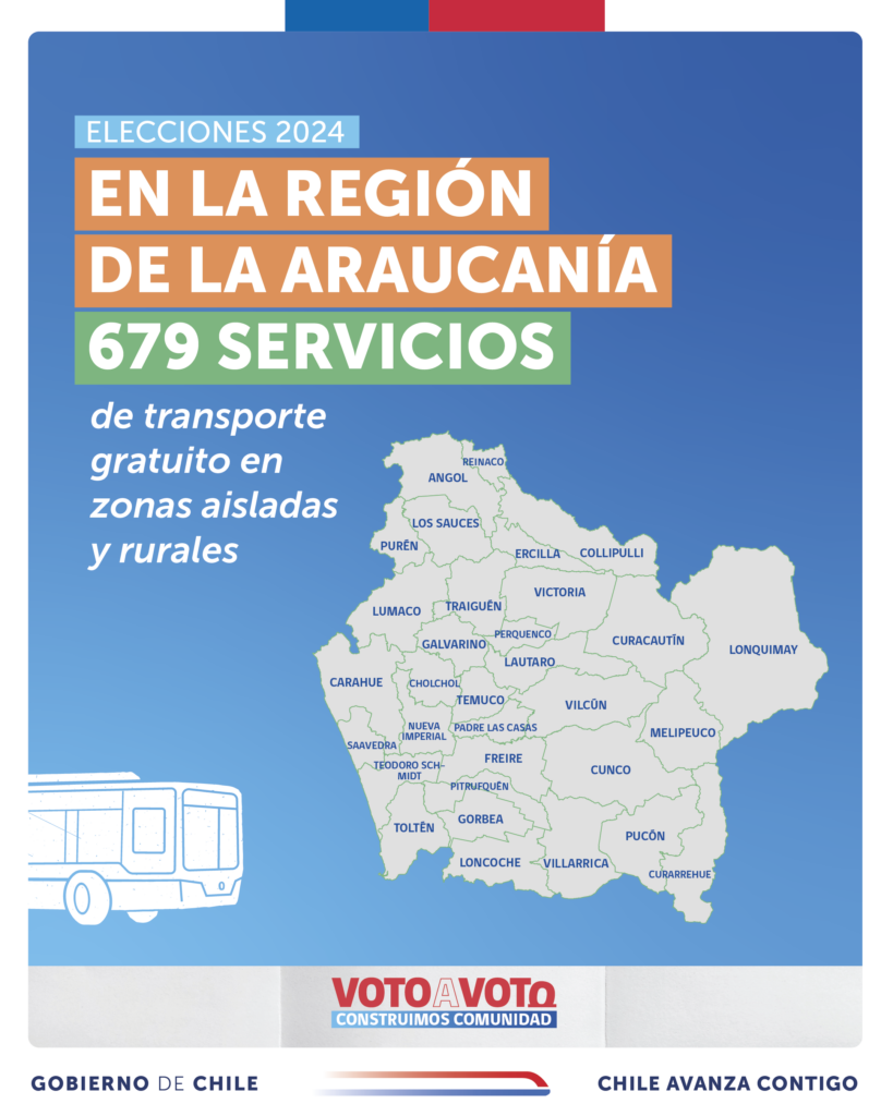 Además, el MTT ha proporcionado a los 32 municipios de La Araucanía los horarios y recorridos de los servicios especiales diseñados para estas elecciones. Se ha establecido un contacto directo con los encargados municipales para supervisar la operación de los buses en terreno durante el proceso electoral.